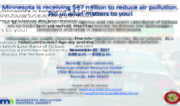 The listening sessions will provide background information on the VW settlement and what it means for Minnesotans. Most of the time will be dedicated to community conversations on what matters to participants and how they would like to see the funds spent to benefit their community.