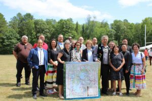 The band held a commemorative ceremony to mark the historic transfer on Wednesday, July 17th. The event held at Bug-O-Nay-Ge-Shig school was the first of its kind for the band and believed to be “…the largest land return to a Tribal Nation within this century,” according to U.S. Under Secretary of Agriculture for Natural Resources and Environment, Homer Wilkes. Throughout the afternoon, community members were able to see maps of the returned land, hear the historical background of why the land was lost, and hear speeches from honored guests.