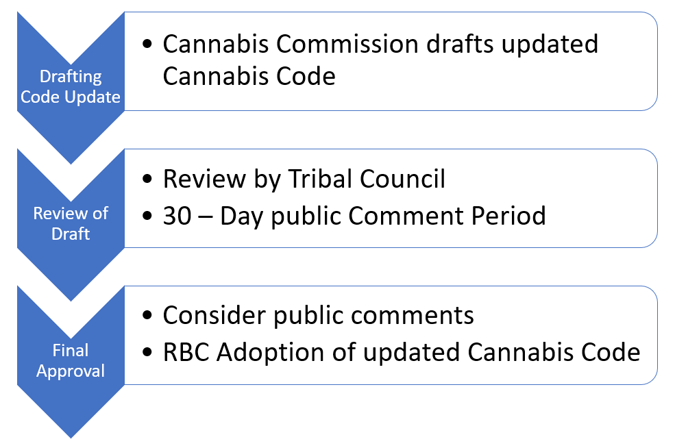 Following the review of the updated Code and during the public review period, the Leech Lake Cannabis Commission anticipates updating the Cannabis Regulations so they are consistent with the framework of the updated Cannabis Code. Once Tribal Council approves the amended Code, the Commission will adopt the updated Regulations through a temporary action that would make the Regulations valid for 90 days. During that 90-day period, these Regulations would be publicly available for review and comment and adopted as the updated Regulations by the Commission. Leech Lake anticipates this entire process to conclude later in 2025, targeting a full completion prior to the end of the year. During this process to update the Cannabis Code and Regulations, the Leech Lake Cannabis Commission will provide public notice of an opening date we are accepting applications for cannabis business licensure.