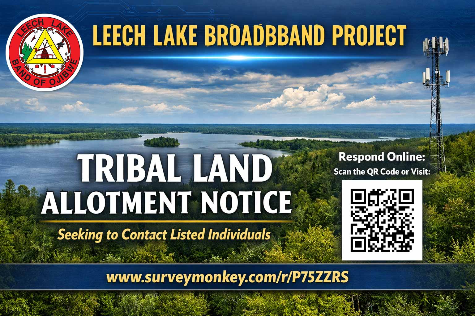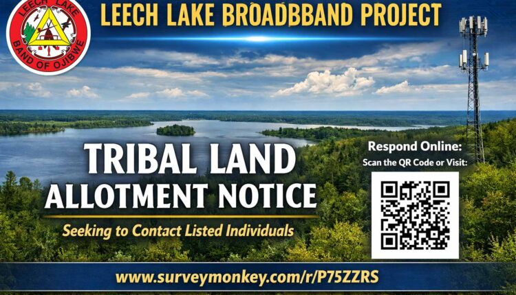 The Leech Lake Band of Ojibwe Broadband Project is seeking to connect with individuals regarding their ownership interest in tribal allotment lands.
