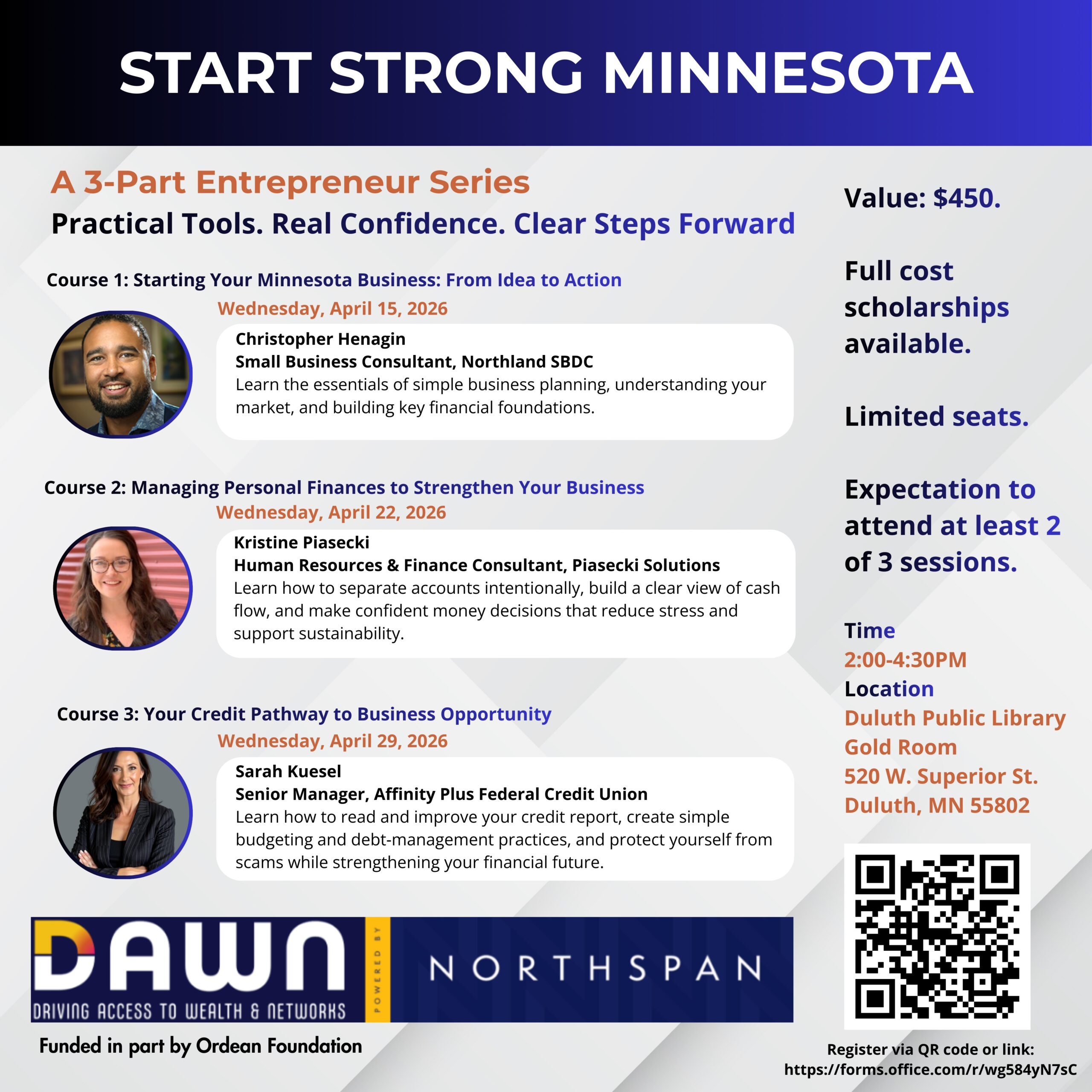 This three part business course is provided by Northspan’s DAWN Program.
