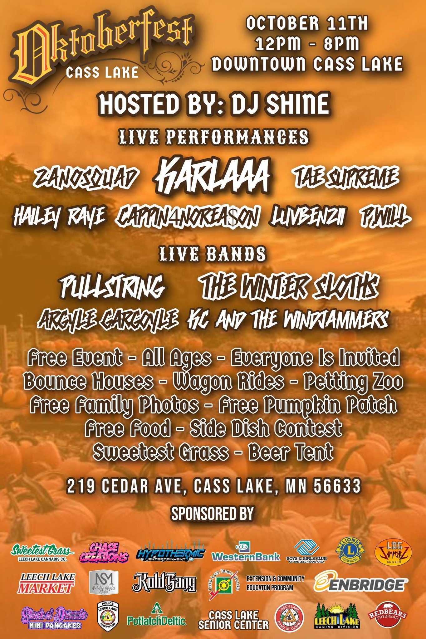 Sponsors: Leech Lake Cannabis Co. (Sweetest Grass), Chase Creations, Hypothermic Entertainment, Western Bank, Leech Lake Market, ASM, Kolt Gang, Enbridge, PotlatchDeltic, Cass Lake Senior Center, Leech Lake Lions Club, Boys & Girls Club, and more.