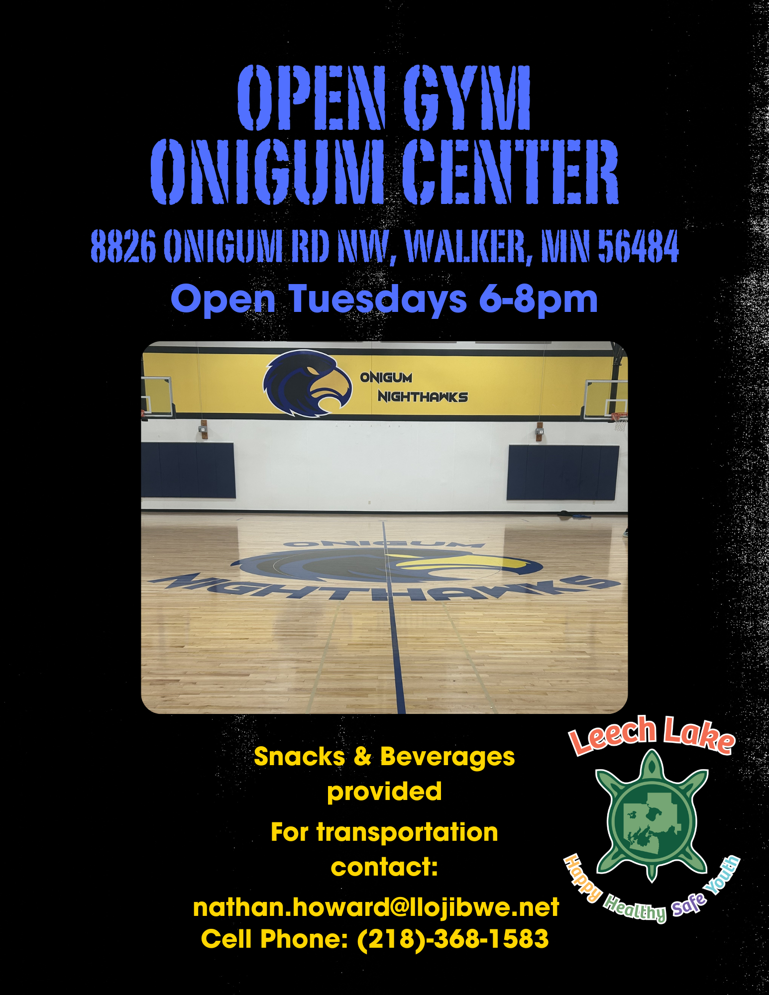 Open Gym at the Onigum Center is available to youth looking for a safe, welcoming space to be active and connect with peers.