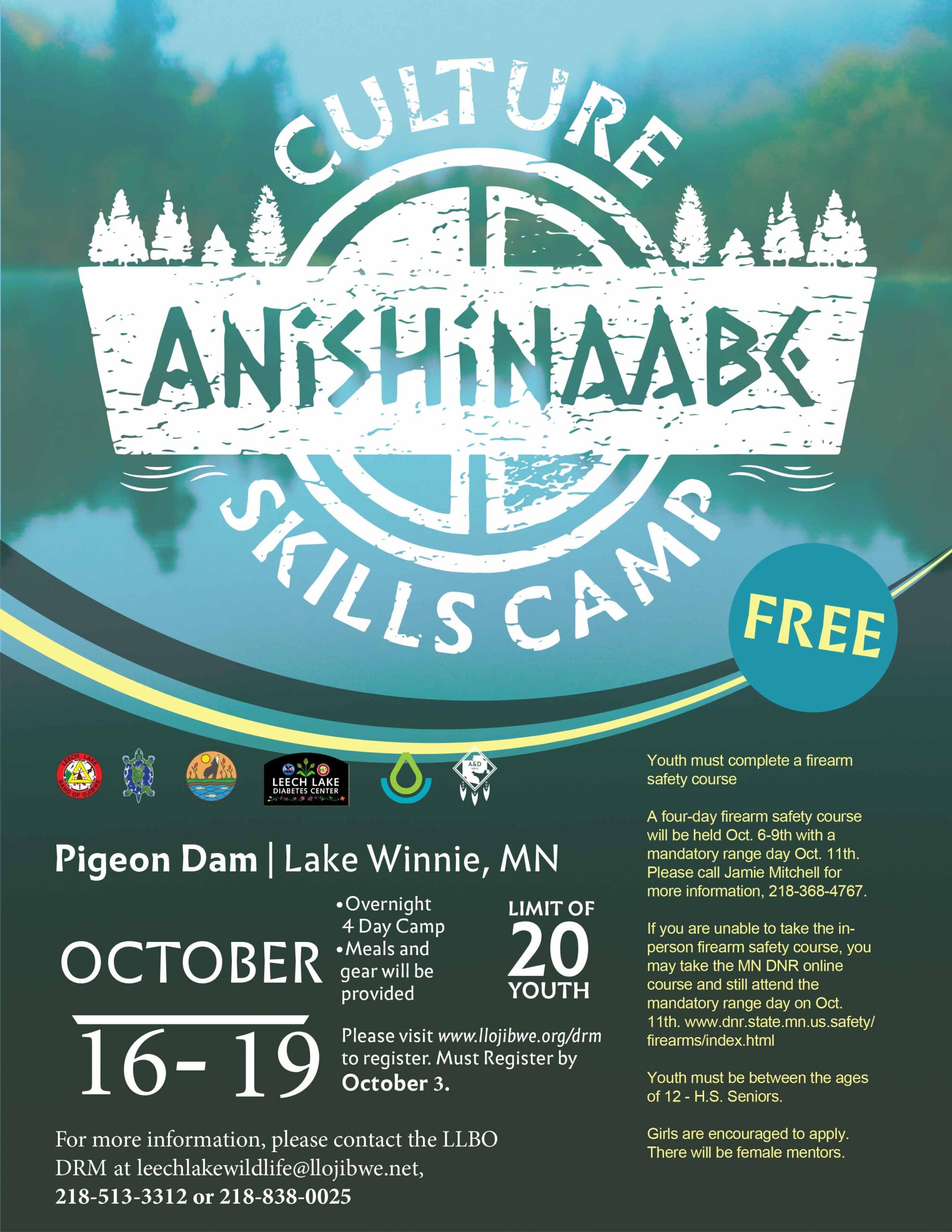 Anishinaabe Culture Skills Camp📍 Pigeon Dam | Lake Winnie, MN📅 October 16 – 19, 2025 Join us for an overnight 4-day youth camp focused on cultural and outdoor skills.✅ Meals and gear provided✅ Limit of 20 youth✅ Must register by October 3 at llojibwe.org/drm Requirements: Youth must complete a firearm safety course. In-person course: Oct. […]